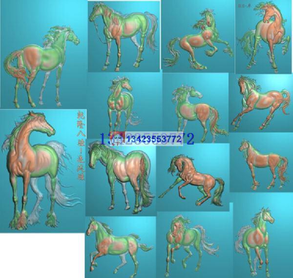 14个乾隆骏马挂件背板精雕图电脑雕刻浮雕图内含灰度图木雕图打包