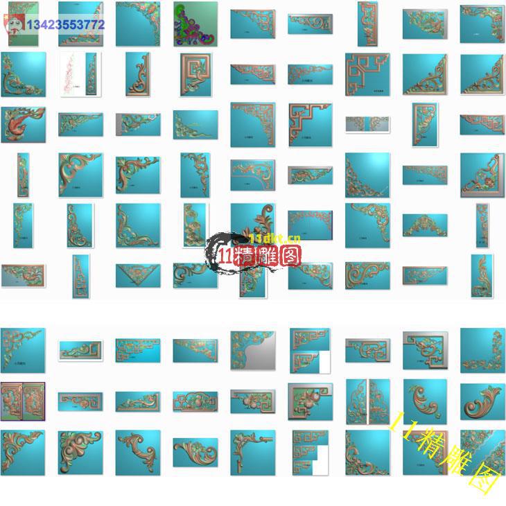 18个精品角花精雕图打包 描线角花洋花浮雕图灰度图雕刻图 木雕图