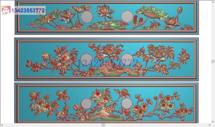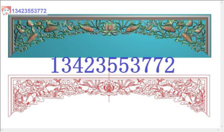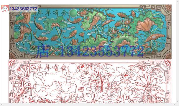 荷花围板屉面抽屉精雕图灰度图电脑雕刻图浮雕图