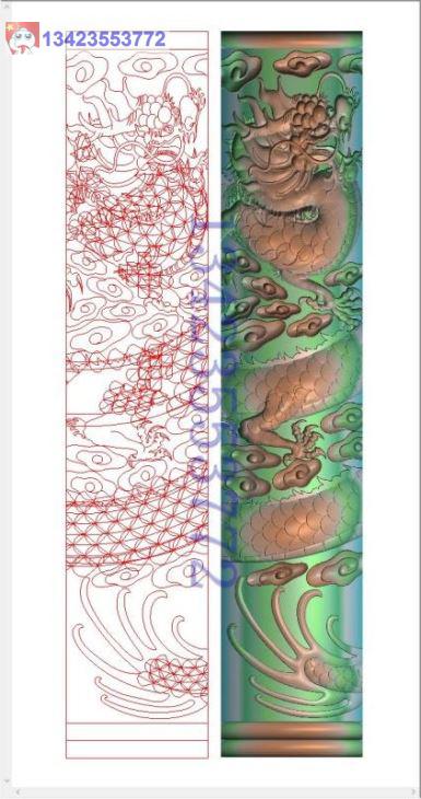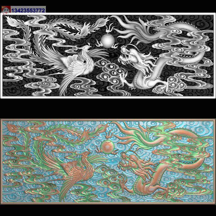 龙凤木葙带线+精雕图+雕刻图+灰度图+JDP精雕+浮雕图