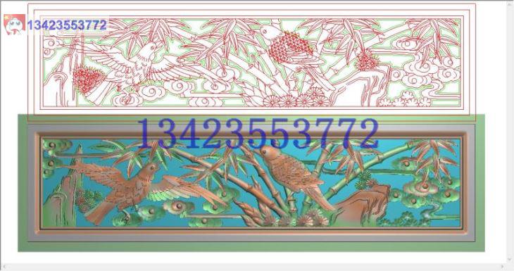 竹子镂空精雕图浮雕刻图灰度图花鸟围板上下花千宫大床下层顶花