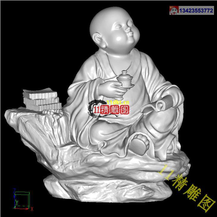小和尚抱桃立体3d打印图模型STL圆雕图