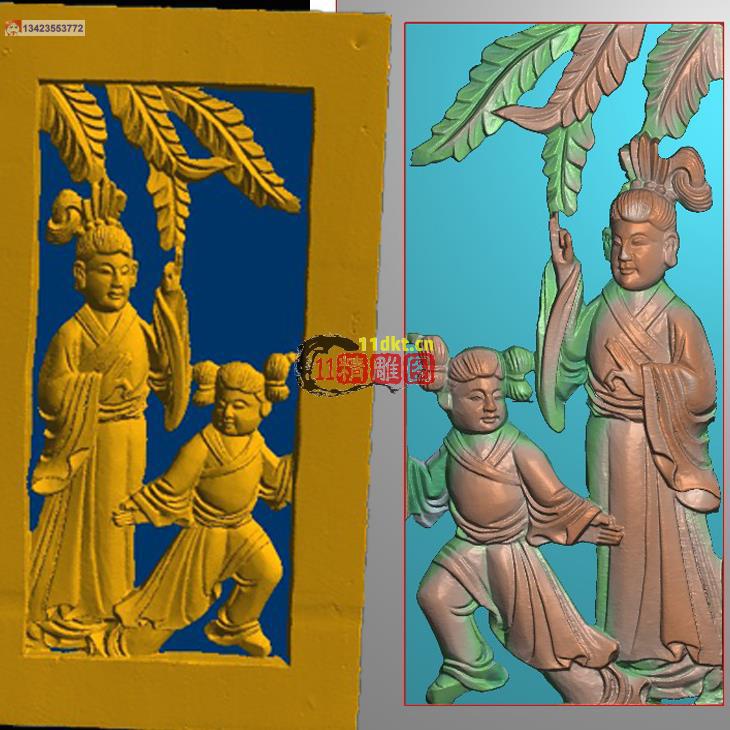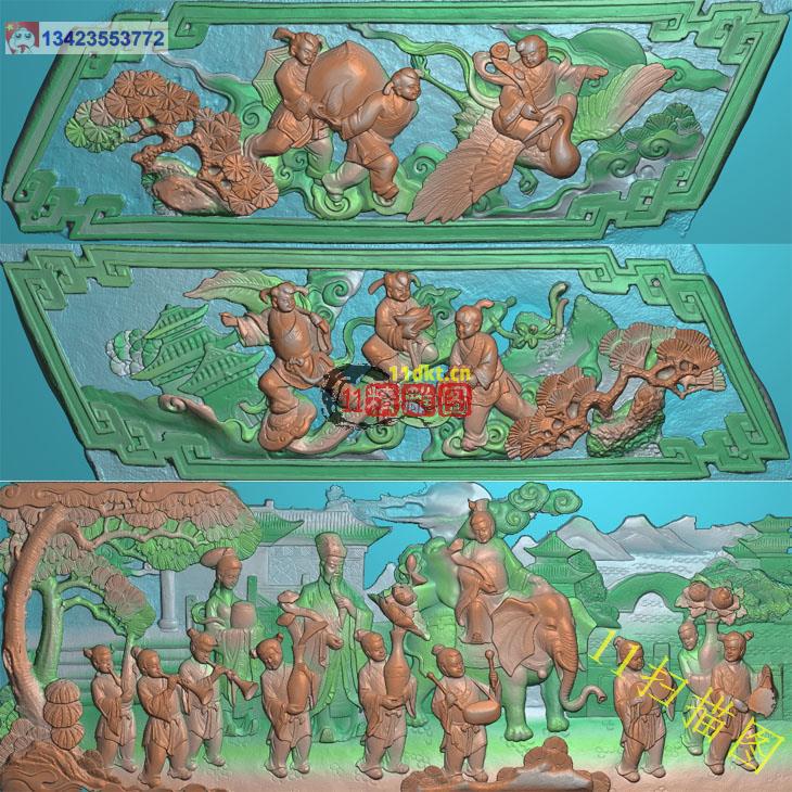 童子抬桃如意仙鹤大角人物精雕图古建筑祠堂寺庙门面儿童孩童浮雕福娃扫描图