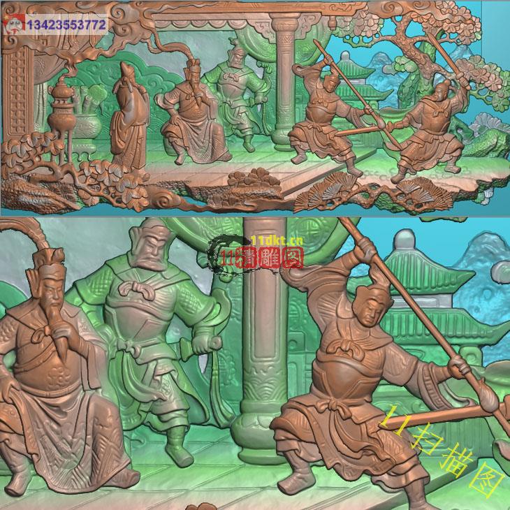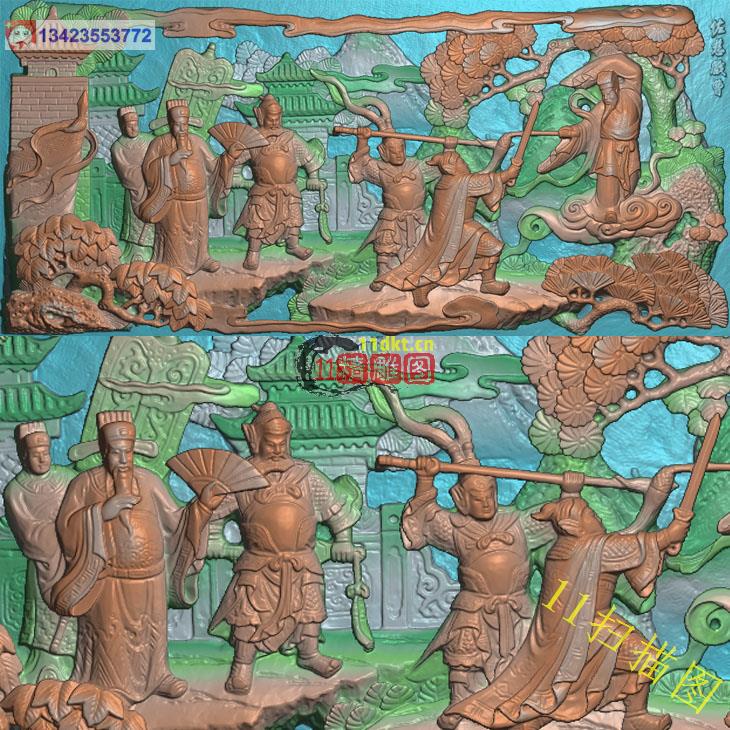 武将三国封神榜故事精雕图古建筑祠堂寺庙门面门楼照壁壁画浮雕扫描图人物