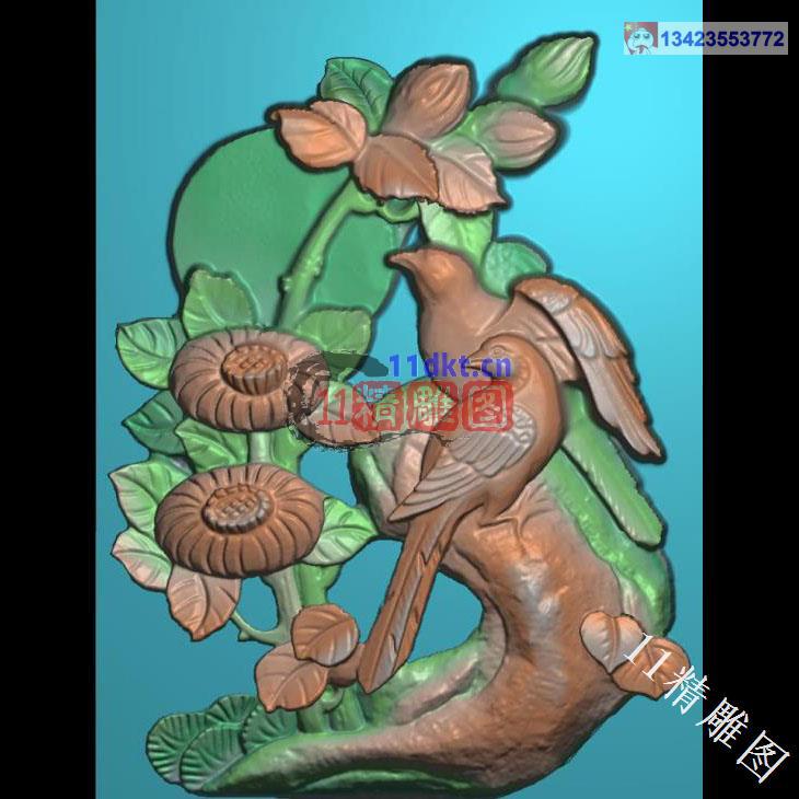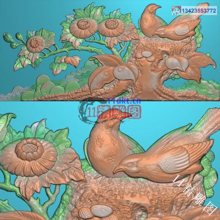 古建秋菊佳色母鸡菊花扫描图 精雕图