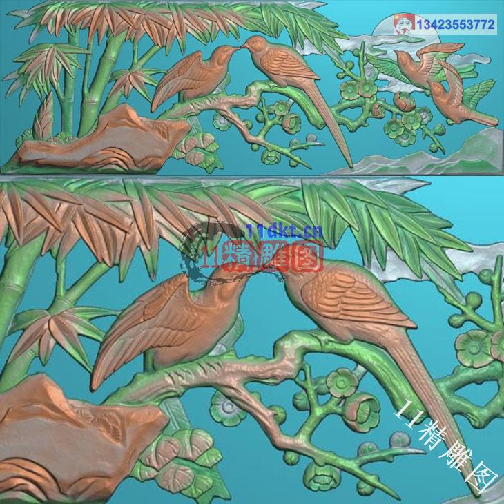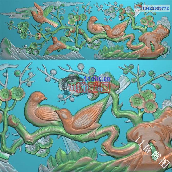 古建喜上眉梢梅花喜鹊图 扫描精雕图