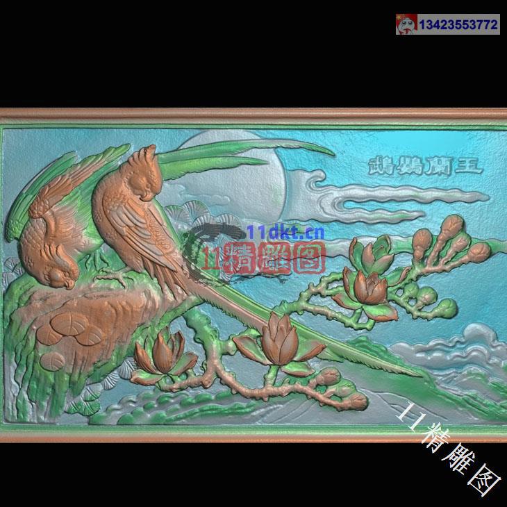 古建鸳鸯鸟莲花荷叶莲蓬扫描图精雕图