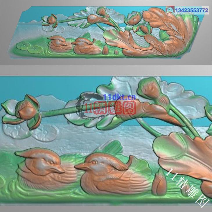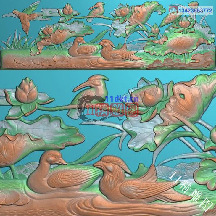 古建鸳鸯莲花荷叶莲蓬扫描图精雕图