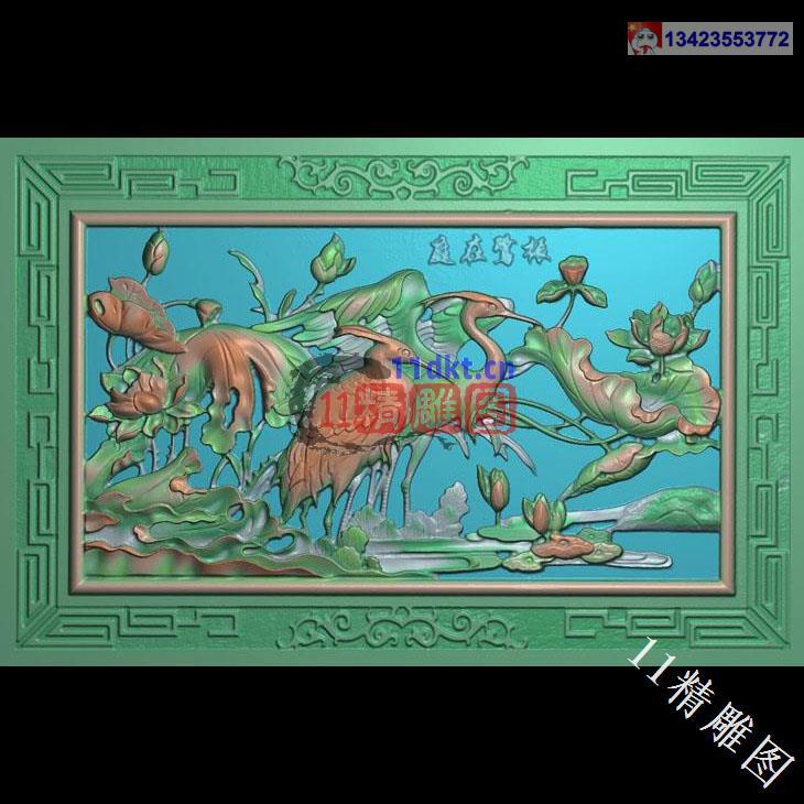 古建振鹭在庭白鹭荷花荷叶莲蓬扫描图精雕图