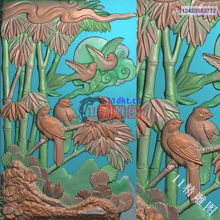 古建竹子喜上眉梢喜鹊梅花精雕图