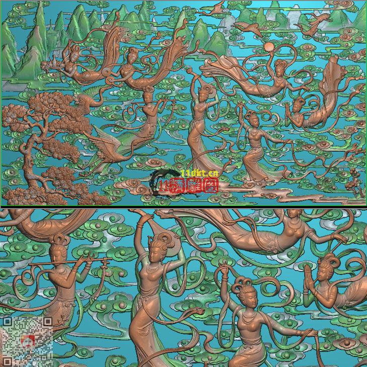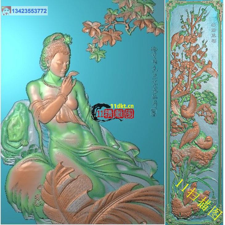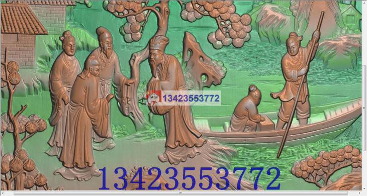 扫描图精雕图灰度图竖人物27-130砖雕石雕浮雕图太平有象麒麟送子