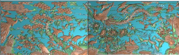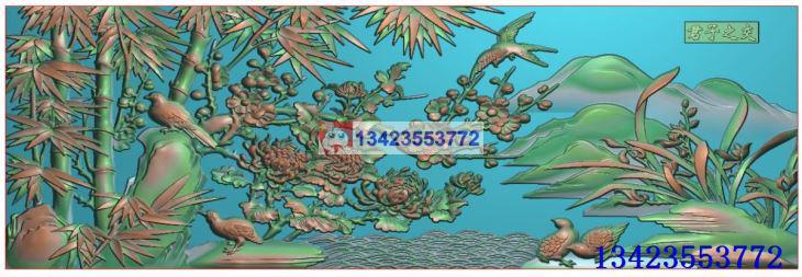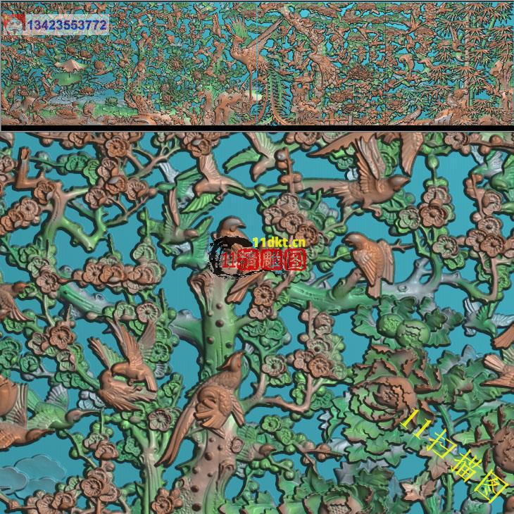 精雕图浮雕扫描锦鸡屏风横板凤凰牡丹孔雀四季花鸟花开富贵
