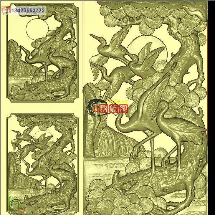 石雕图浮雕图 木雕图 荷香鹤舞190053942没线条扫描图
