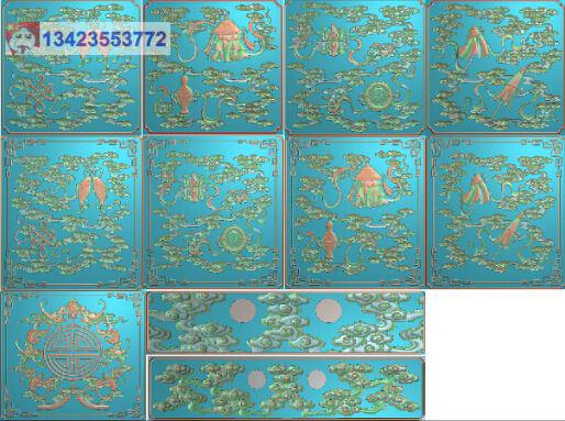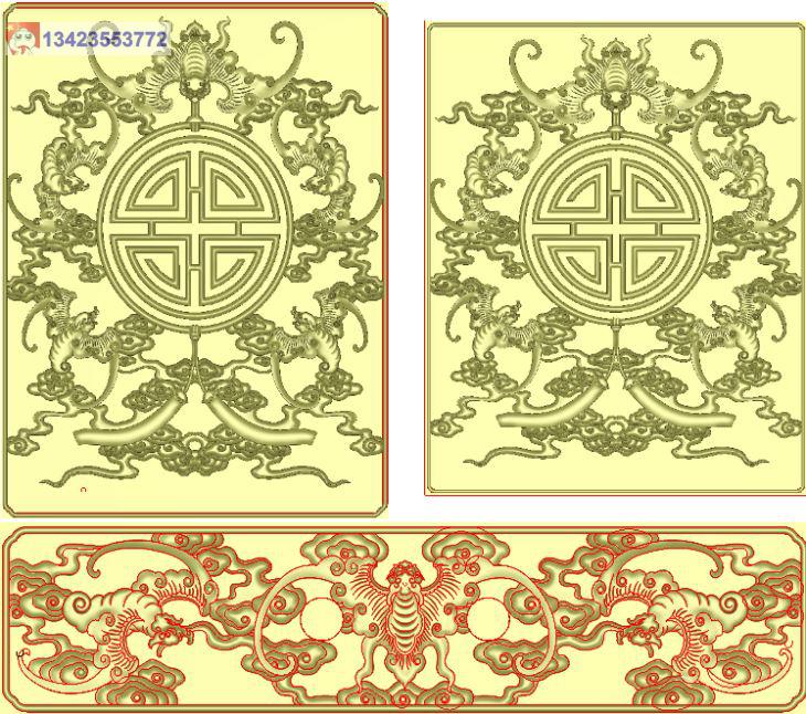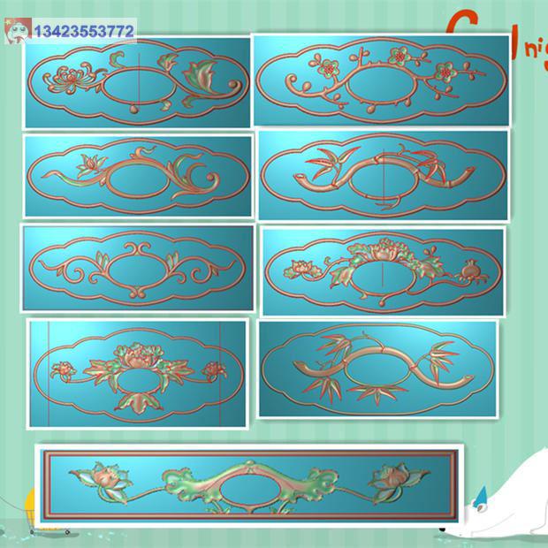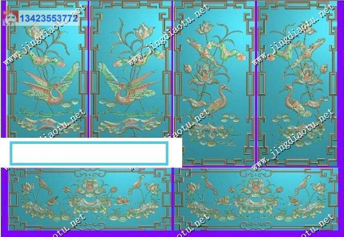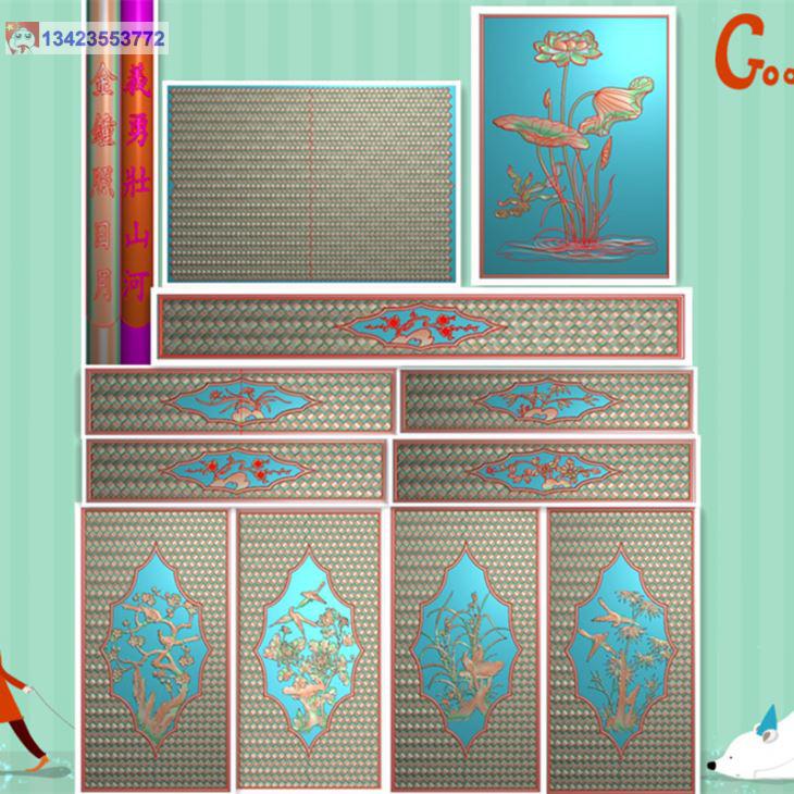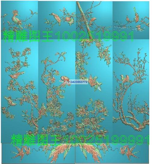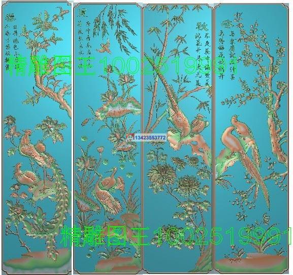 花鸟四季大顶箱_有字带线-雕刻素材基地