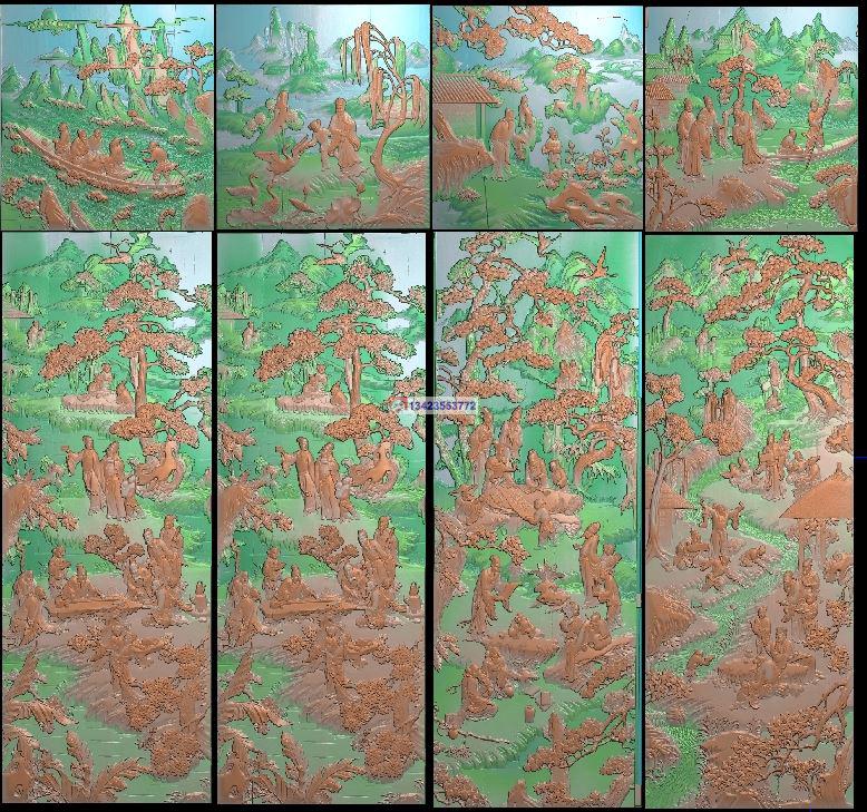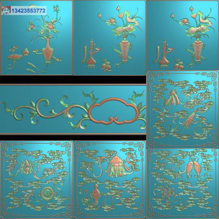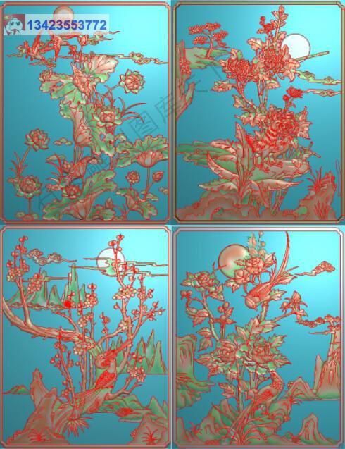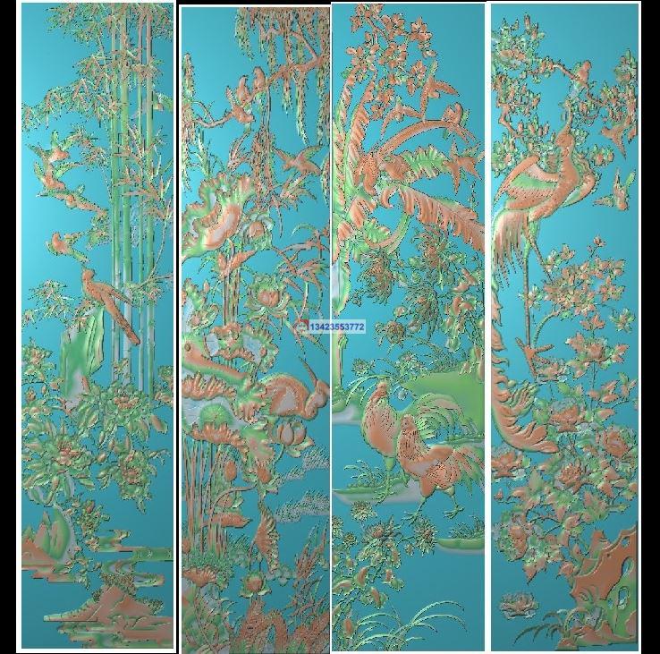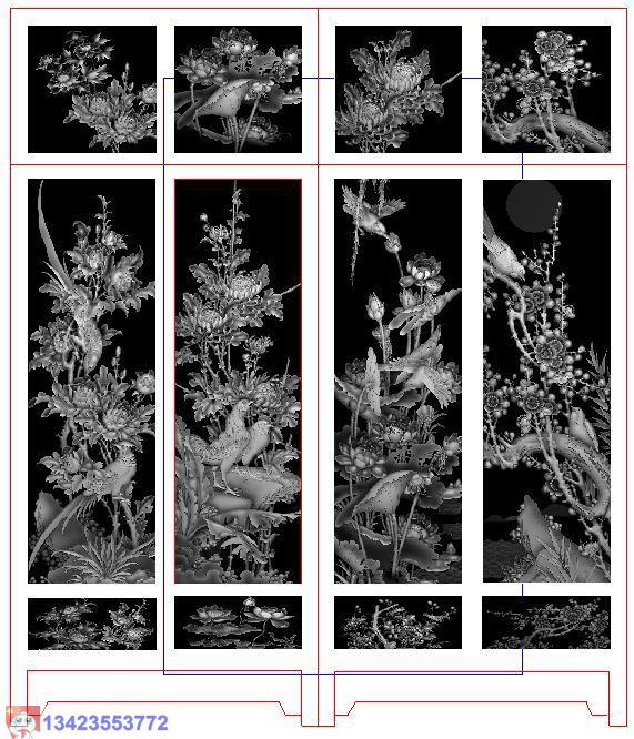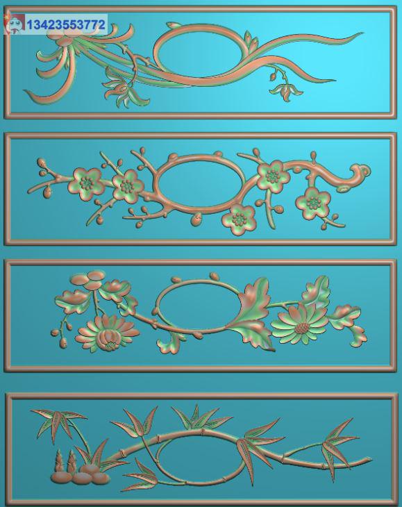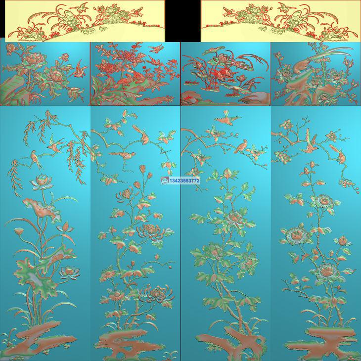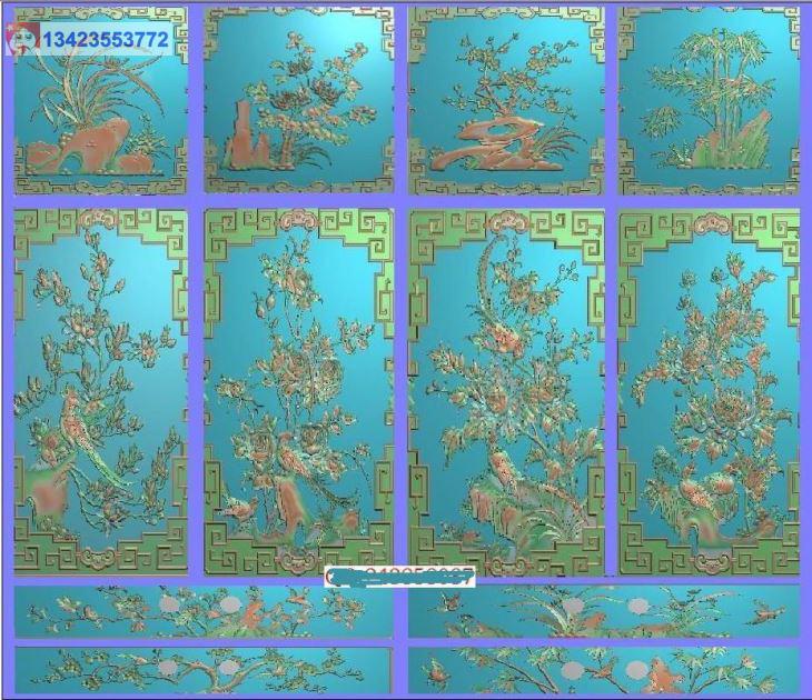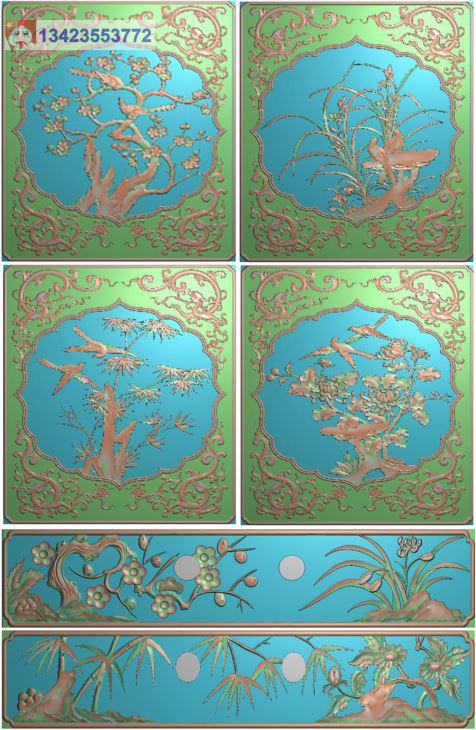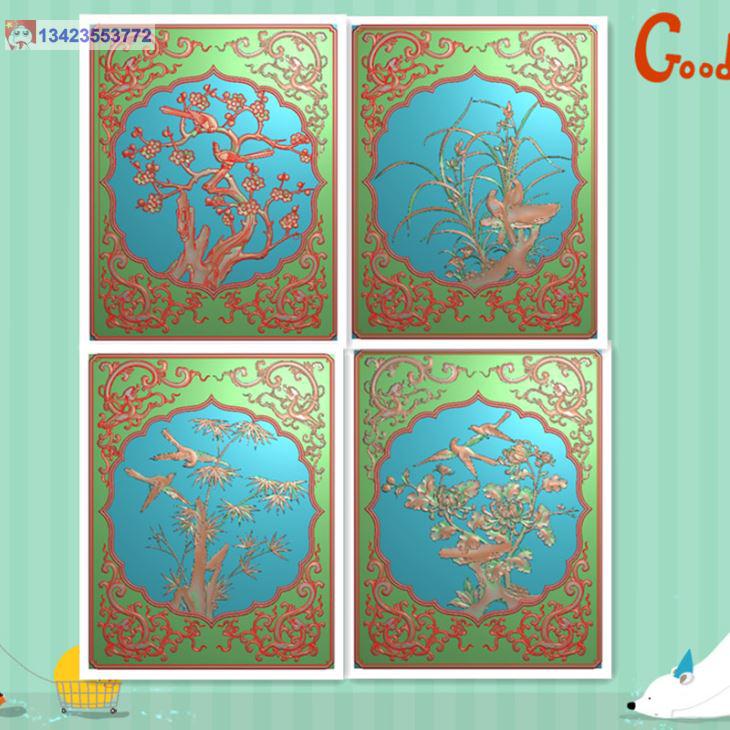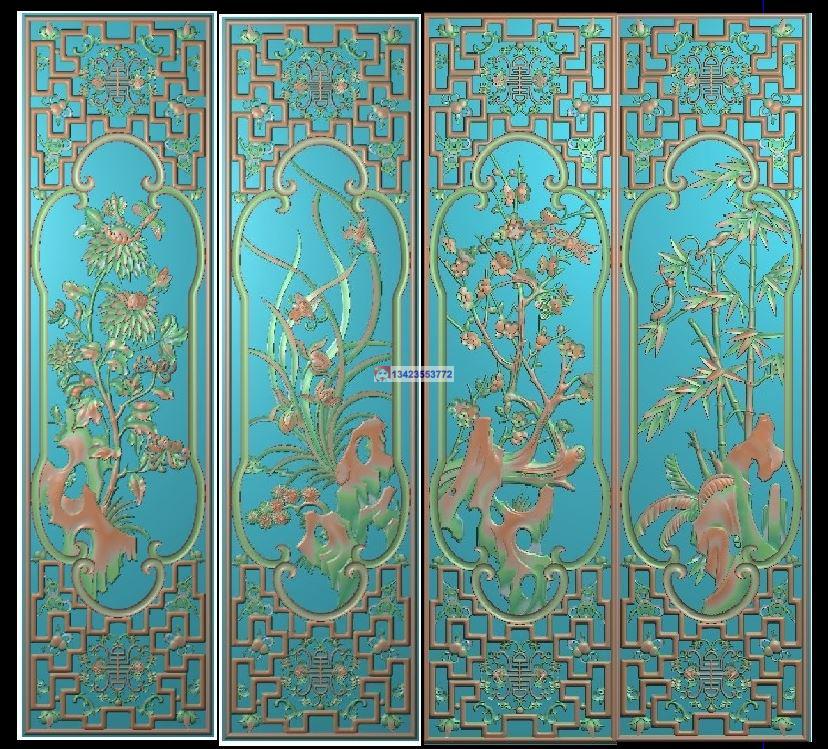 精品梅兰菊竹精雕图书柜门板精雕图灰度图浮雕梅兰竹菊浮雕屏风图