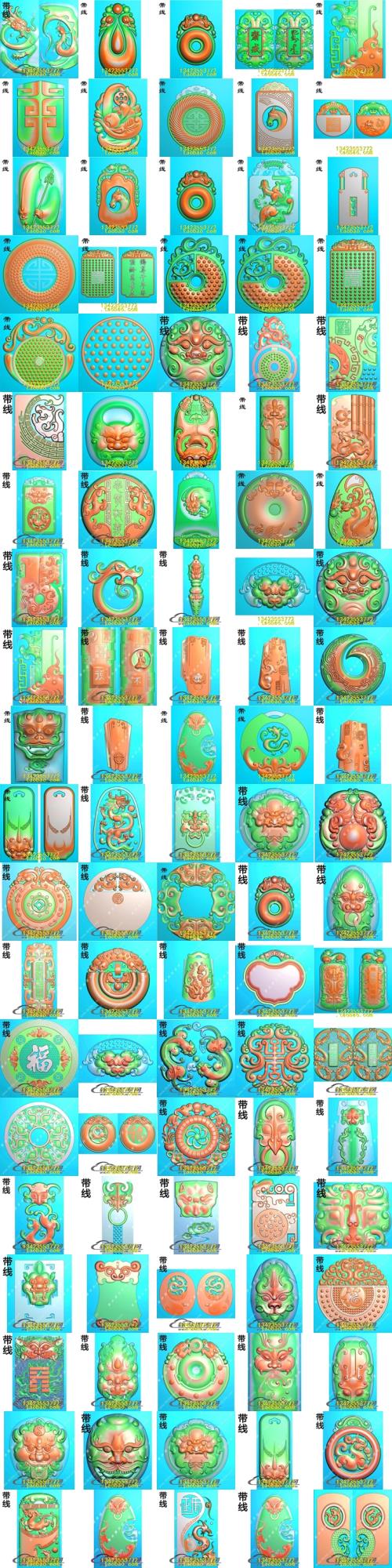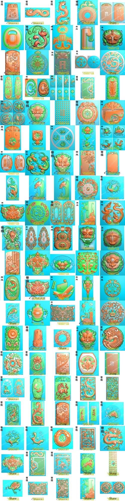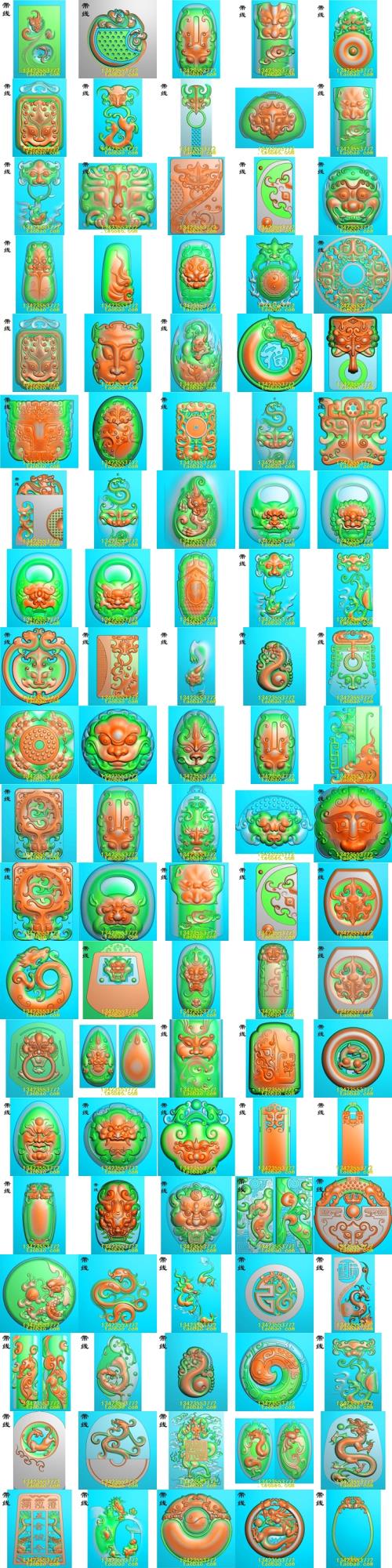 万张精雕图浮雕图玉雕图圆牌仿古 兽头 兽面 狮子头 貔貅仿古兽牌