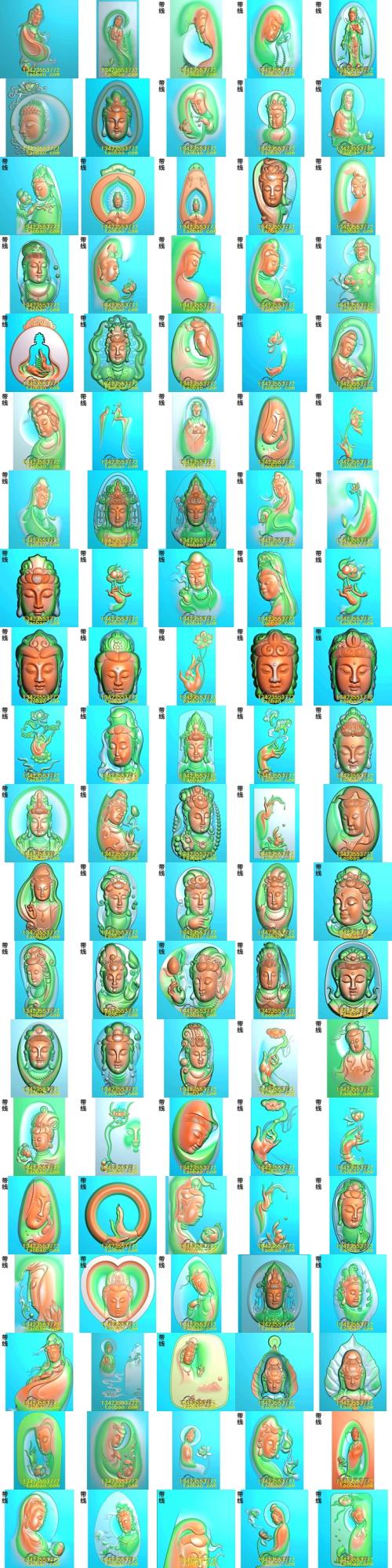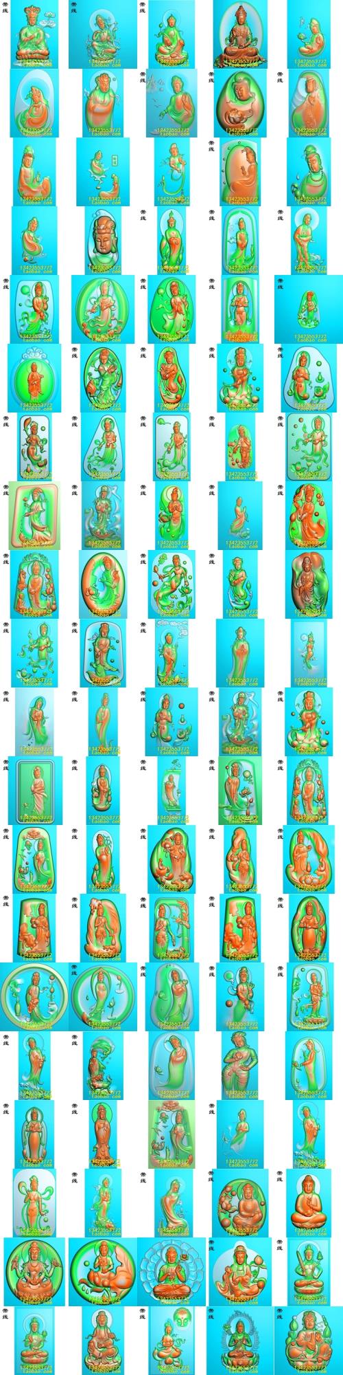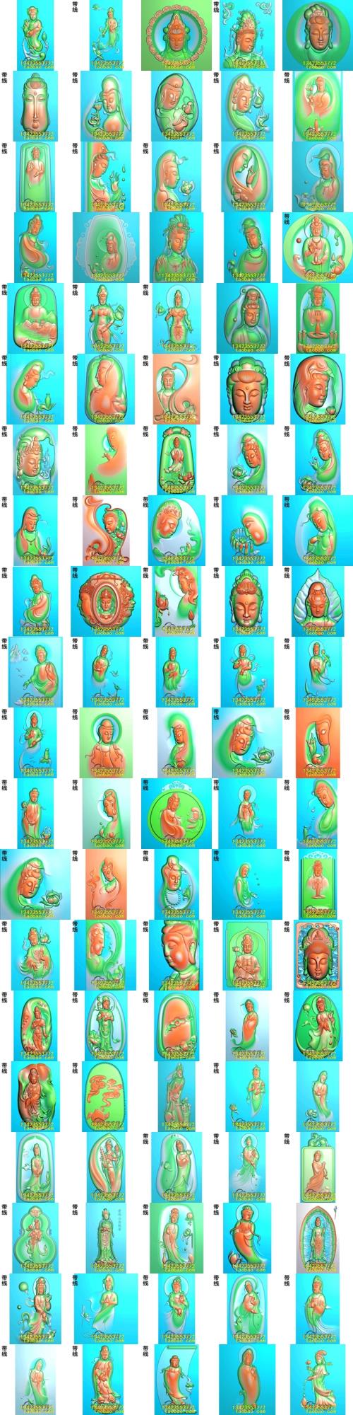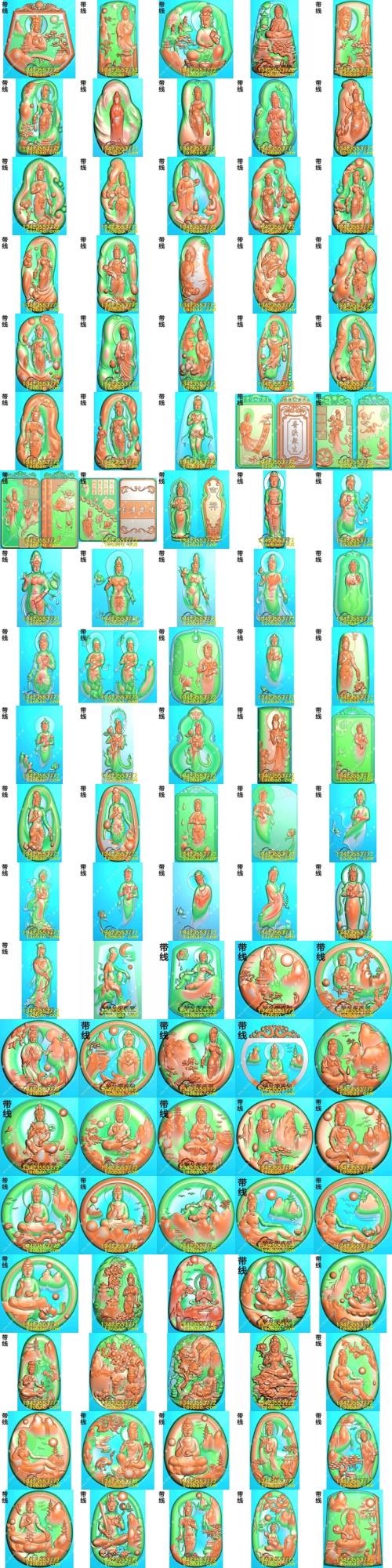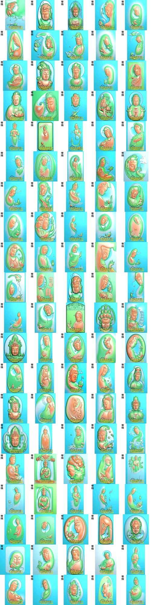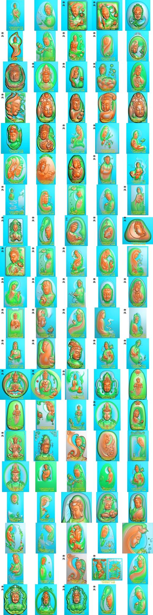 万图库随形观音坐莲站莲花底座佛像精雕图 观音挂件浮雕图 玉雕图