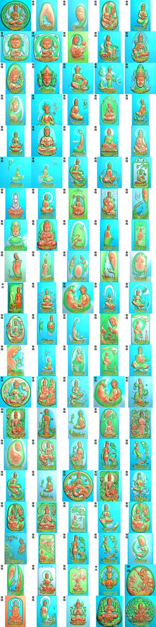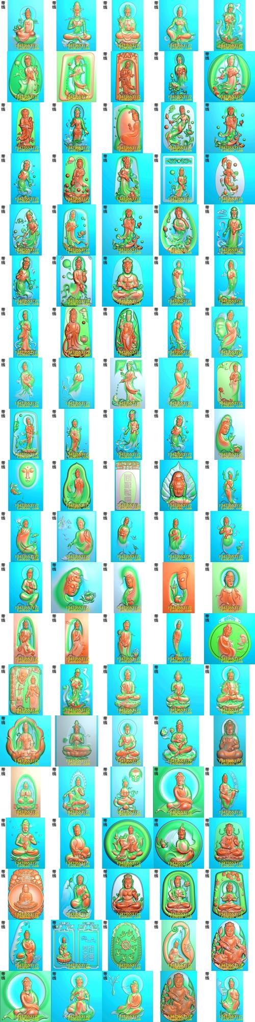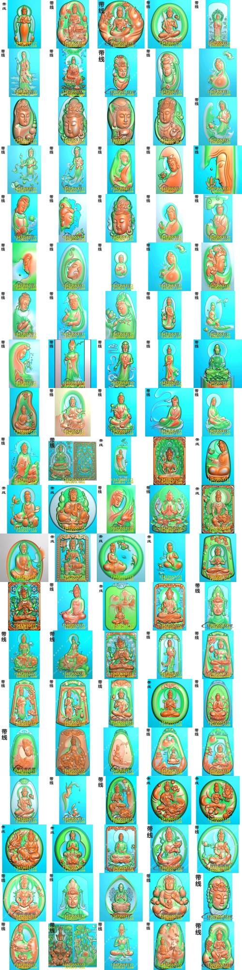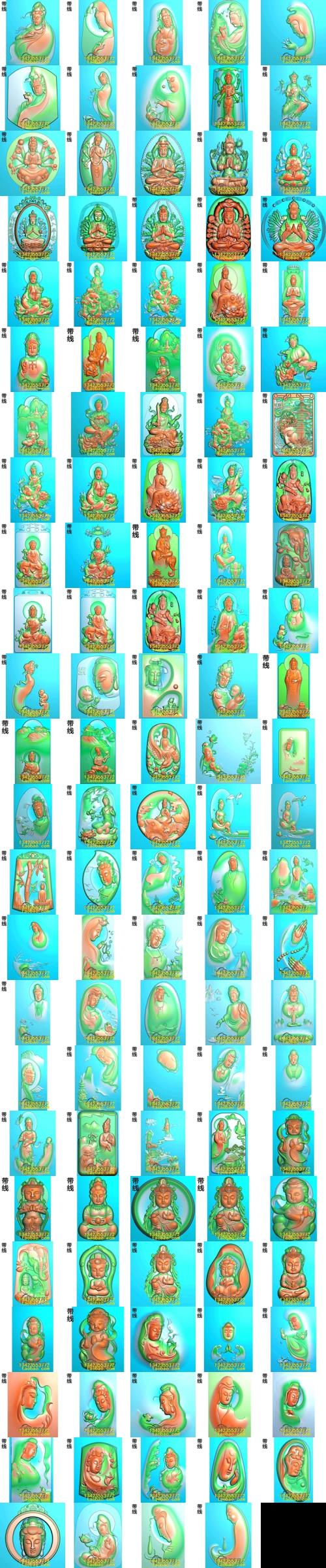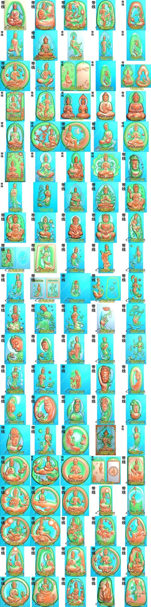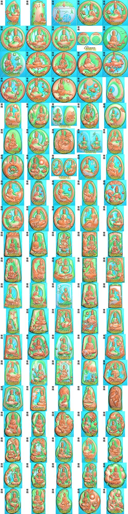 万图库随形观音坐莲站莲花底座佛像精雕图 观音挂件浮雕图 玉雕图