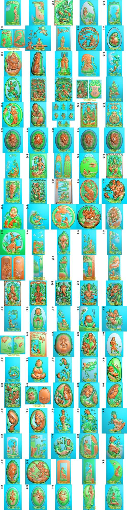 各类人物挂件46牌精雕图JDP格式浮雕玉雕图电脑雕刻图