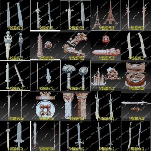 > 刀剑斧机械建筑三维立体圆雕图STL文件3D打印模型图纸合集 >