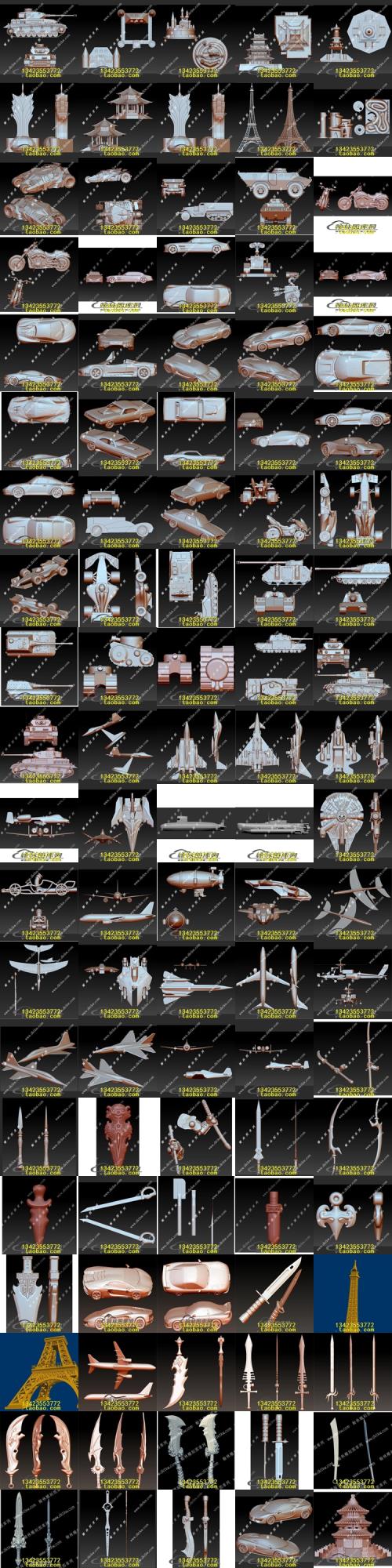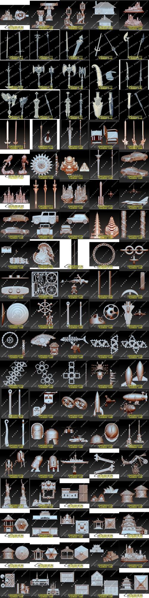 刀剑斧机械建筑三维立体圆雕图STL文件3D打印模型图纸合集
