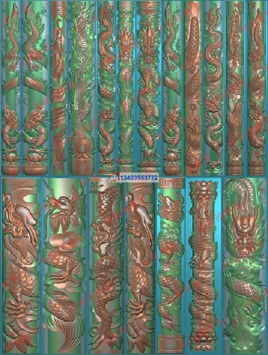 盘龙柱竖长石雕龙边龙墓碑龙柱竖龙木雕图精雕图浮雕灰度电脑雕刻