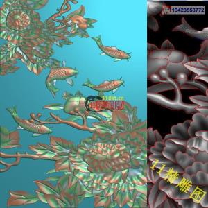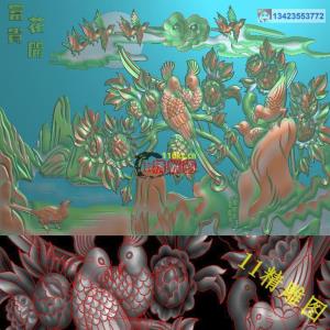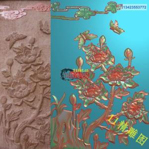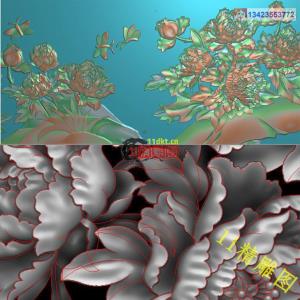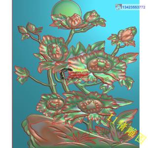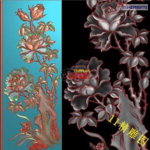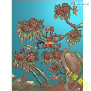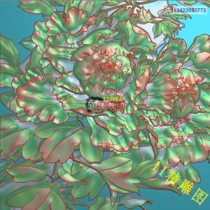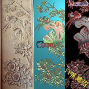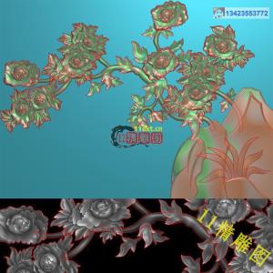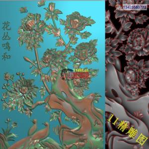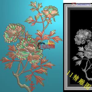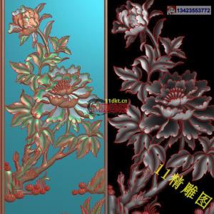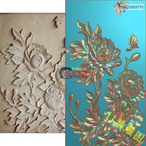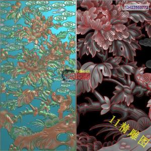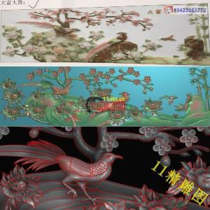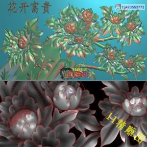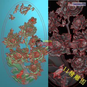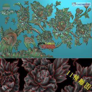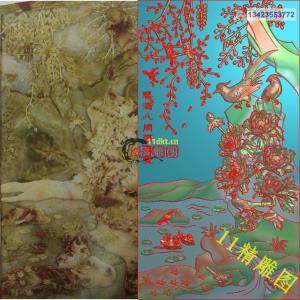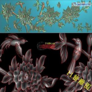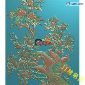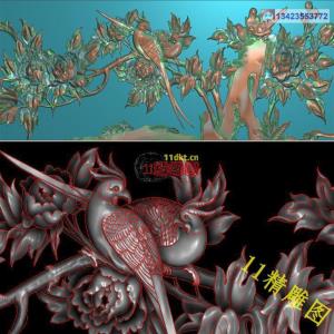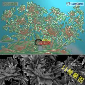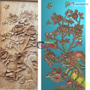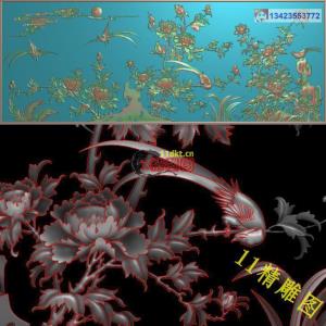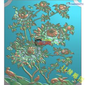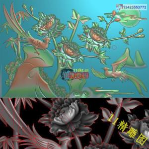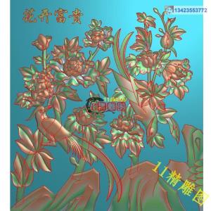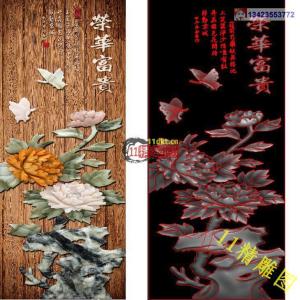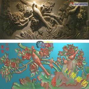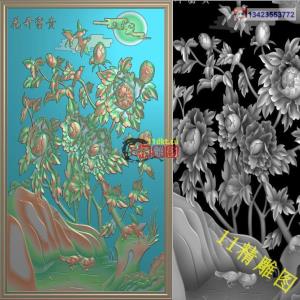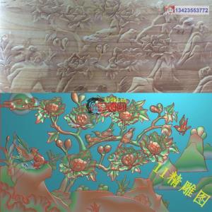 国色天香精雕图牡丹花鸟横屏风挂屏花开富贵木雕石雕图jdp