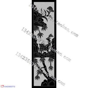 墓碑立柱鹿竹子线雕图