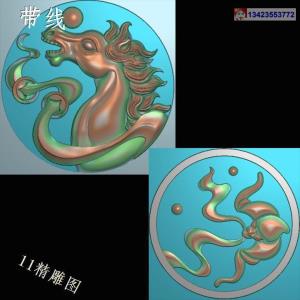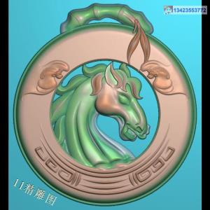 圆形马头挂件带线精雕图