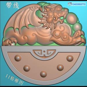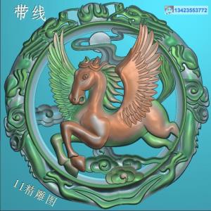 圆形双龙边框飞马挂件带线精雕图