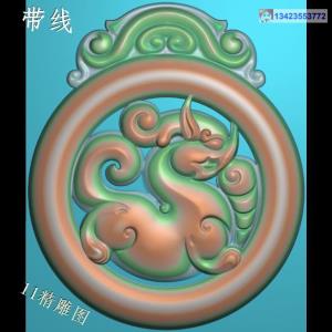 圆形瑞兽貔貅挂件带线精雕图