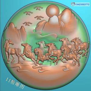 圆形山水八骏挂件精雕图