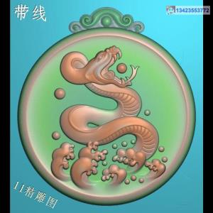 圆形蛇牌挂件带线精雕图