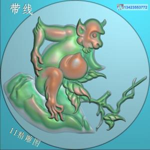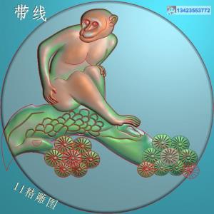 圆形松树猴子挂件带线精雕图