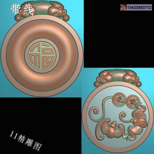 圆形寿桃猴子挂件带线精雕图