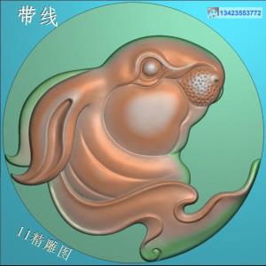 猪挂件素材带线精雕图
