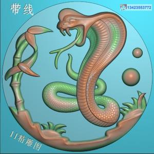 圆形竹子蛇牌挂件带线精雕图