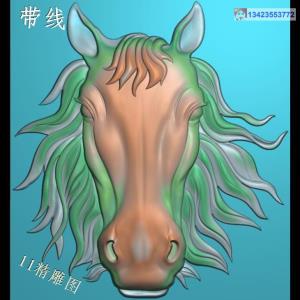 正面马头挂件带线精雕图