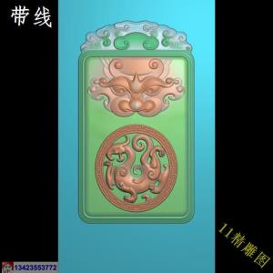 玉雕仿古兽头令牌 带线精雕图