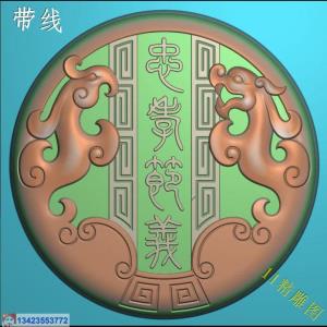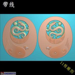 圆仿古龙凤对 带线精雕图