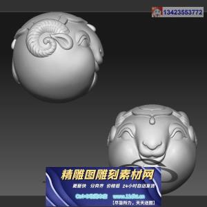羊头圆珠手串立体圆雕图
