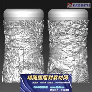 鸳鸯戏水圆柱图笔筒图 圆雕图立体3d打印图模型STL