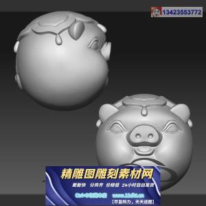 猪头圆珠手串立体圆雕图