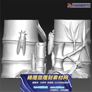 竹子笔筒蝉知足圆雕图立体3d打印图模型STL