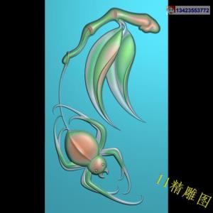 蜘蛛竹子知足常乐无事牌无框带线精雕图