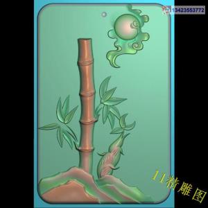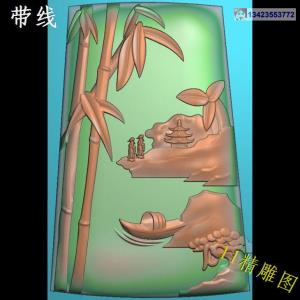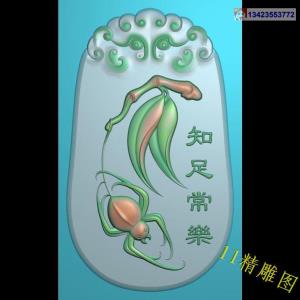 蜘蛛竹子知足常乐无事牌有框带线条精雕图