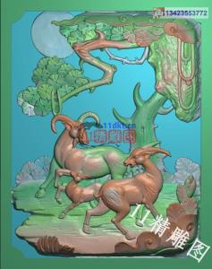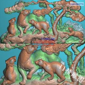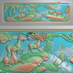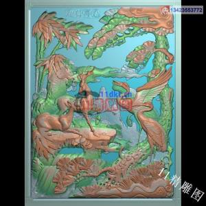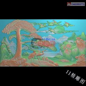 中式迎客松仙鹤梅花鹿扫描图精雕图