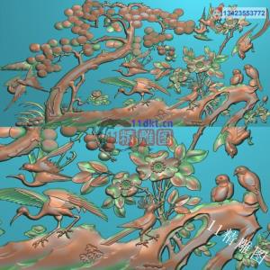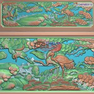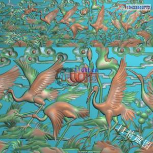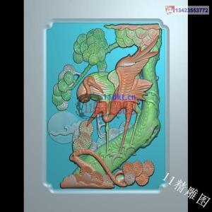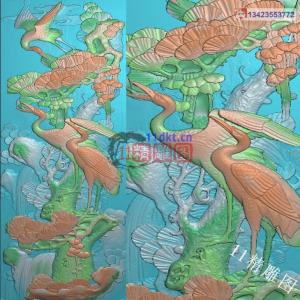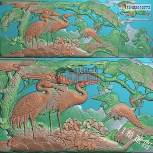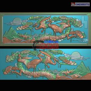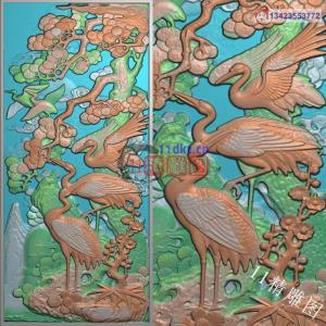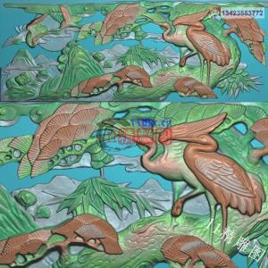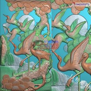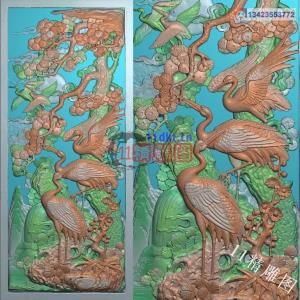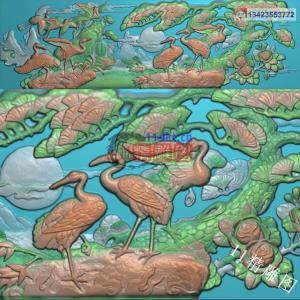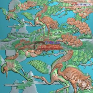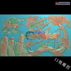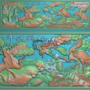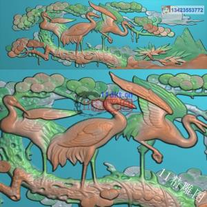 中式迎客松仙鹤年延鹤松扫描图精雕图