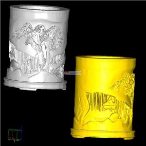 浮雕山水人物纹笔筒
