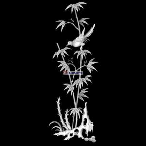 H048灰度图竹鸟竖屏精雕图竹鸟屏风精雕图竹鸟